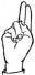 На ћирилици написано ЈУСТИН МЕЧАНИН састоји се из 13 слова [?]. Исписано ћириличном једноручном азбуком за глувонеме: